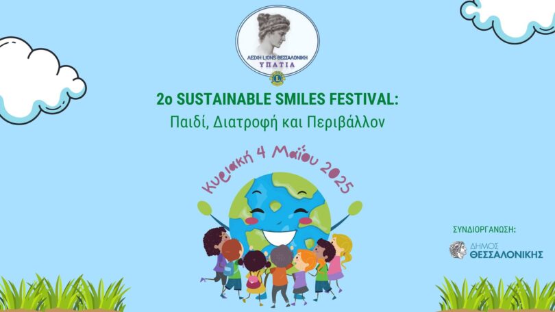 Η Λέσχη Lions Θεσσαλονίκη Υπατία και η Λέσχη Lions Ψυχικού Αθηνών, σε συνεργασία με την Αντιδημαρχία Αθλητισμού, την Αντιδημαρχία Υγείας και την Αντιδημαρχία Περιβάλλοντος του Δήμου Θεσσαλονίκης, προσκαλούν μικρούς και μεγάλους στο 2ο Sustainable Smiles Festival μία ξεχωριστή γιορτή ζωής, γνώσης και βιωματικής μάθησης, την Κυριακή 4 Μαΐου 2025, από 11:00 έως 14:00 στον προαύλιο χώρο του Δημαρχείου και στην αίθουσα Μανώλης Αναγνωστάκης.